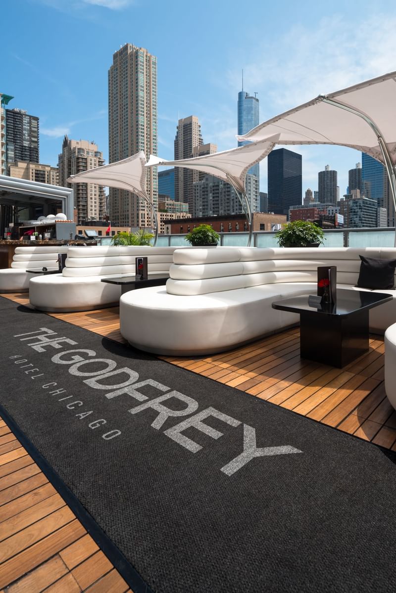 Get started at the indoor bar with plush banquettes and a VIP area. Breeze through the sliding glass wall and you’ll find yourself sipping drinks at the outdoor bar during the day, after work, at night, or on weekends in front of the commanding views of Chicago.