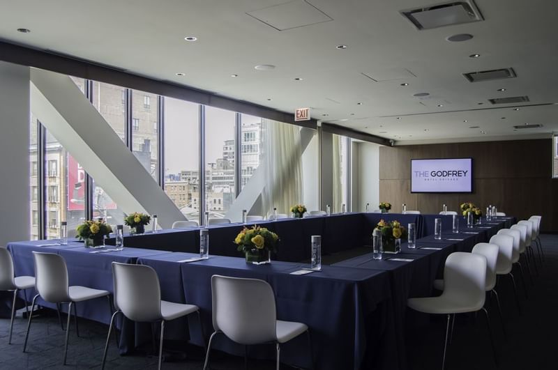 Our Truss meeting room is designed for meetings that range in size from 10-85; The Godfrey Hotel offers a chic and sophisticated alternative to conduct cutting-edge presentations and meetings.
